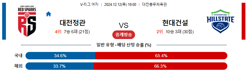 [벳조이]12월 12일 정관장 vs 현대건설 【V-리그】