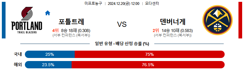 [벳조이]12월20일 포틀랜드:덴버너게츠 NBA