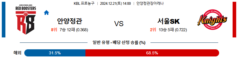 [벳조이]12월21일 안양정관장:서울SK KBL