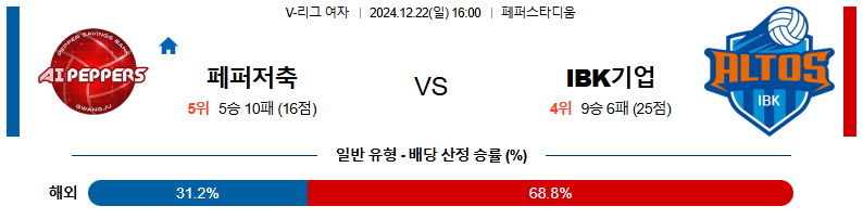 [벳조이]12월22일 페퍼저축은행:IBK기업은행 V리그(여)
