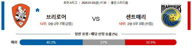 [벳조이]01월03일 브리즈번:센트럴코스트 호주1부