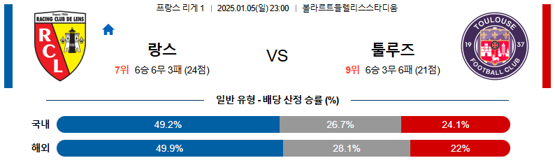 [벳조이]01월05일 랑스:툴루즈 리그앙