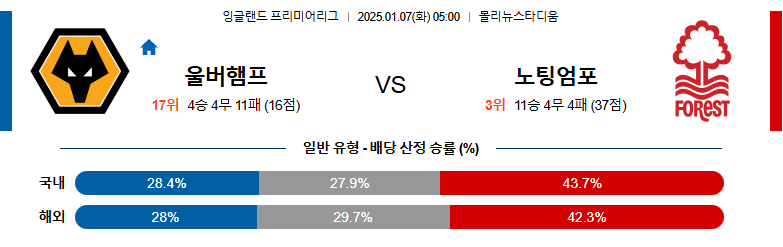 [벳조이]01월07일 울버햄튼:노팅엄 EPL