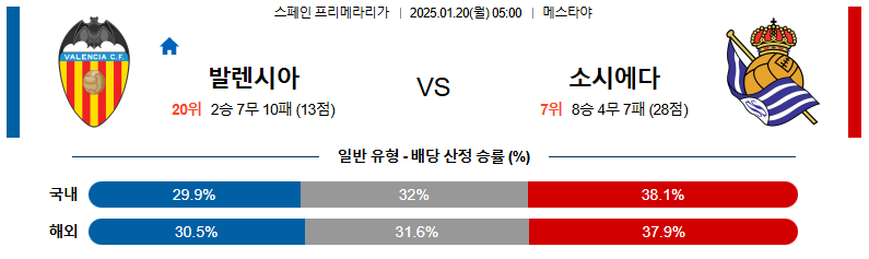[벳조이]01월20일 발렌시아:소시에다드 라리가
