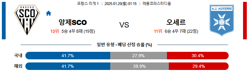 베팅 전략으로는 앙제 패, 앙제 핸디캡 패, 오버를 추천합니다.