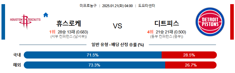 [벳조이]01월21일 휴스턴:디트로이트 NBA