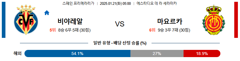 [벳조이]01월21일 비야레알:마요르카 라리가