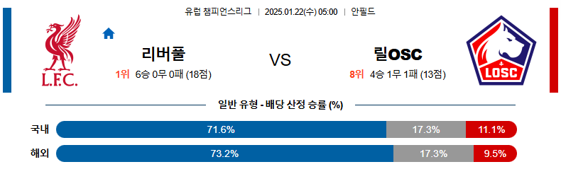 [벳조이]01월22일 리버풀:릴 챔피언스리그 분석