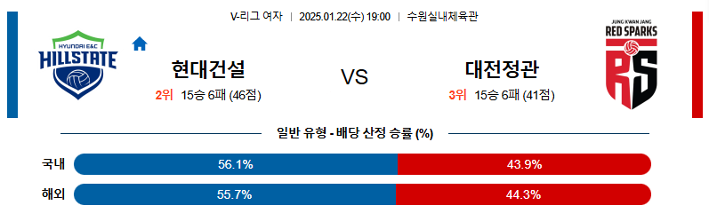 [벳조이]01월22일 현대건설:정관장 V리그(여) 분석
