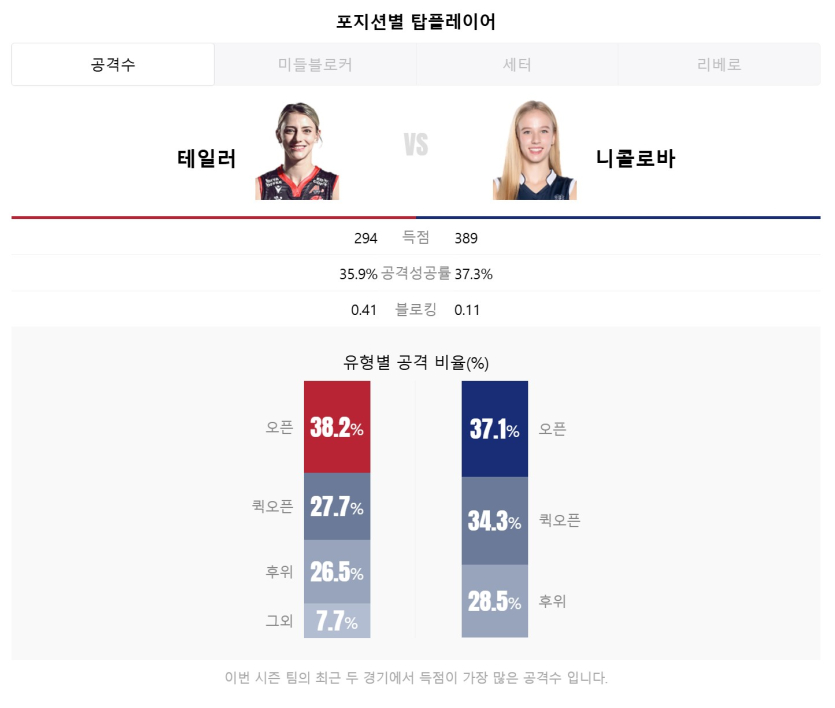 반면, 도로공사는 7승 15패로 최근 정관장과의 경기에서 0-3으로 패배하며 2연승이 중단되었습니다. 이전 GS칼텍스와의 경기에서는 3-2로 승리한 바 있습니다. 강소휘와 니콜로바가 각각 12득점, 11득점을 기록하며 분전했지만, 타차나의 공격 효율성이 저조했습니다. 김다은 세터의 공격 옵션 다양성과 연결의 정교함이 부족했던 점도 아쉬움으로 남았습니다. 원정경기에서는 3승 7패의 성적을 보이고 있습니다.