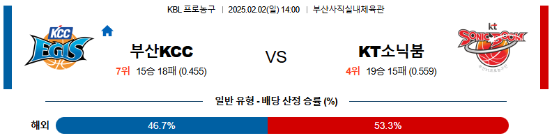 [벳조이 스포츠 분석]02일 02일 14:00 NBA 부산 KCC 수원 KT