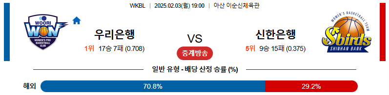 [벳조이 스포츠 분석]02일 03일 19:00 WKBL 우리은행 신한은행