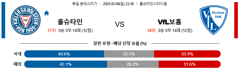 [벳조이 스포츠 분석]02일 09일 23:30 분데스리가 홀슈타인 킬 VfL 보훔