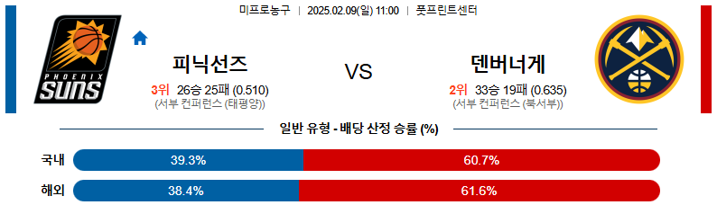 [벳조이 스포츠 분석]02일 09일 11:00 NBA 피닉스 선즈 덴버 너겟츠
