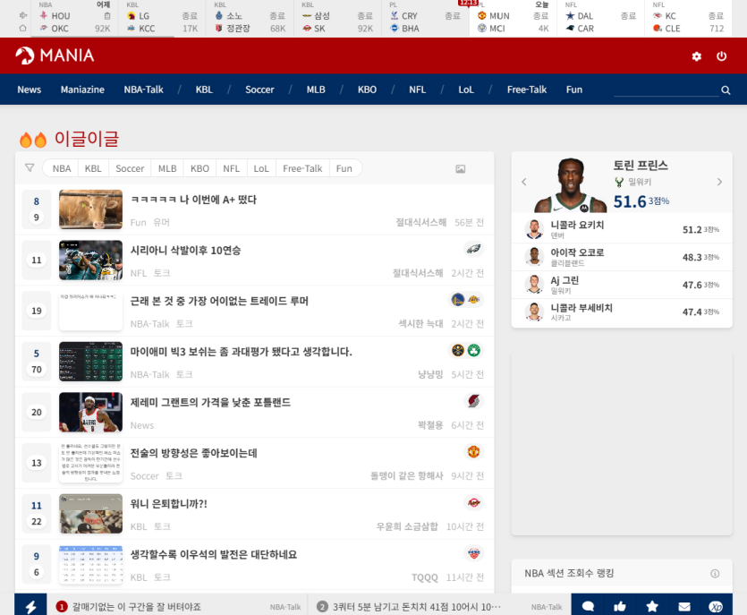 ◎ 국내에서 가장 큰 토토 커뮤니티로, 경기 실시간 점수를 확인하는 데 많이 이용됩니다.