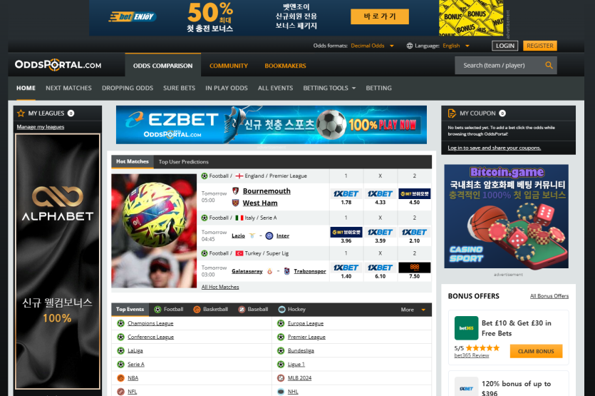 ◎ 전 세계 40여 개 메이저 배팅 사이트의 배당률을 비교하고, 양방 배팅이나 조합 배팅을 위한 도구를 제공합니다.
