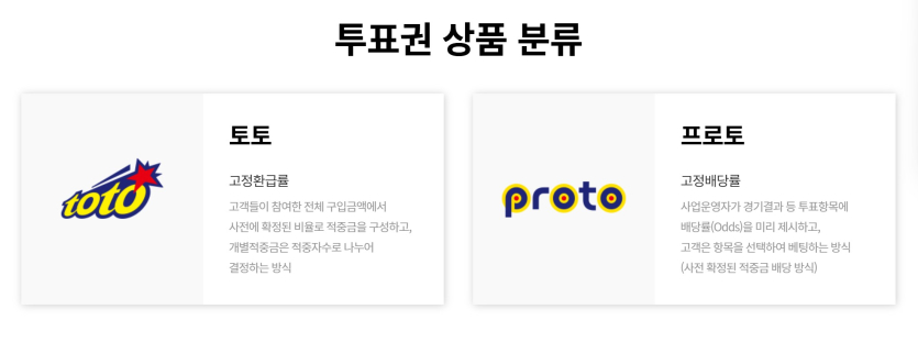 프로토는 스포츠토토 측에서 지정한 국내외 축구, 야구, 농구 경기에 대해 배당률을 고정시키고,