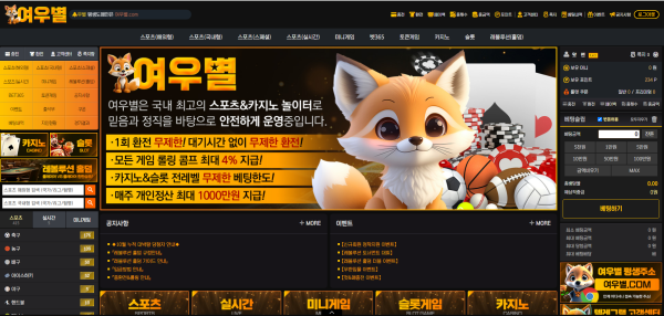 이번에 사용하던 곳 을 옮겨 좋은곳으로 소개를 받아 글 을 남깁니다 ㅎㅎ 여우별 이라는 곳이며 입플 이벤트 등 여러가지 이벤트가 많아 이용자들 분들이 많이 이용하셨으면 합니다