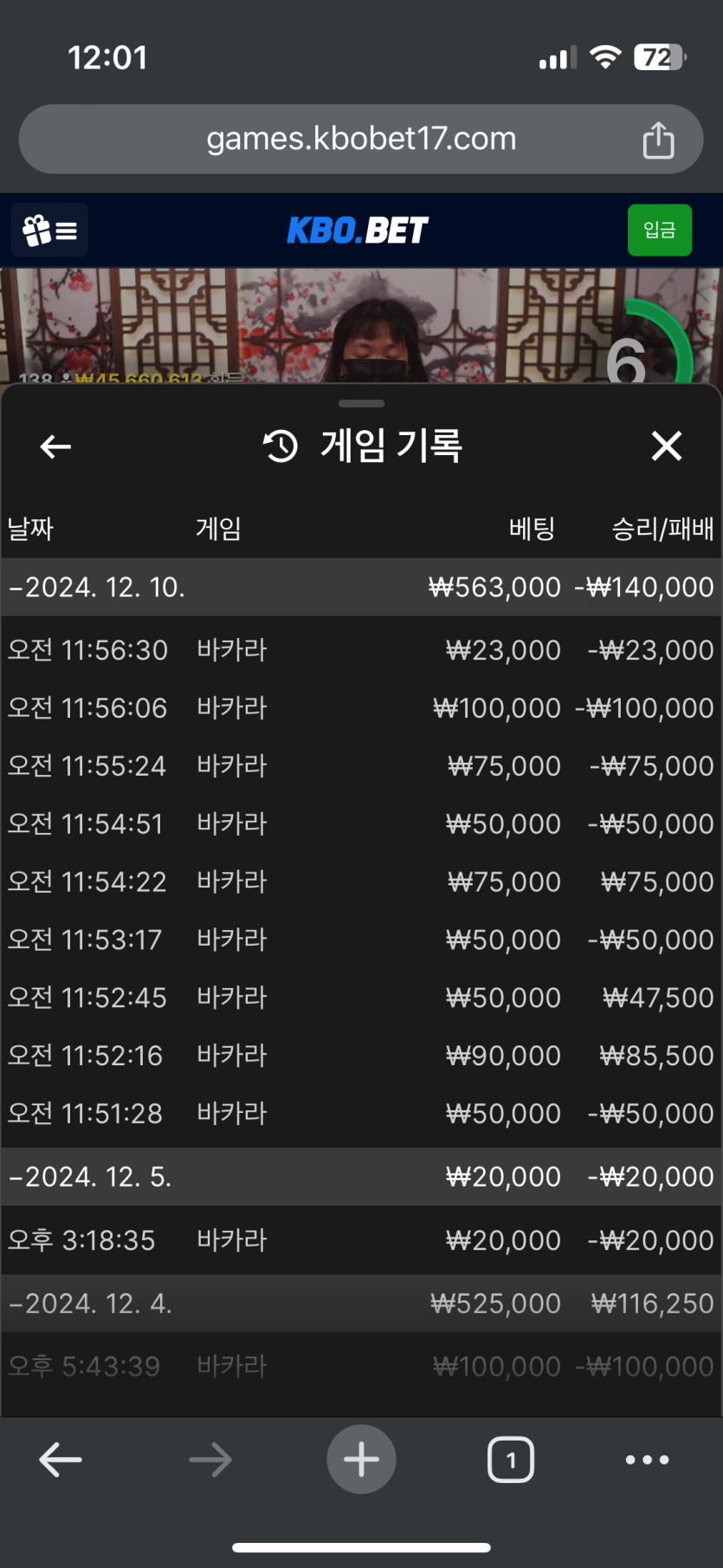 크보벳 사이트에서 오늘 바카라 승부 중입니다.ㅎ