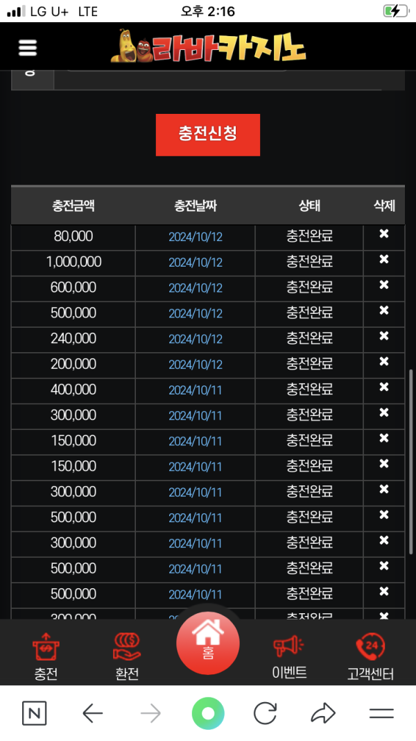 라바카지노 비카라이용했어요 많은 충전과 환전을 반복해서 했습니다.