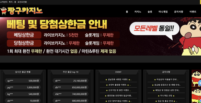 짱구카지노 스포츠랑 슬롯을 자주 이용하고 있습니다.